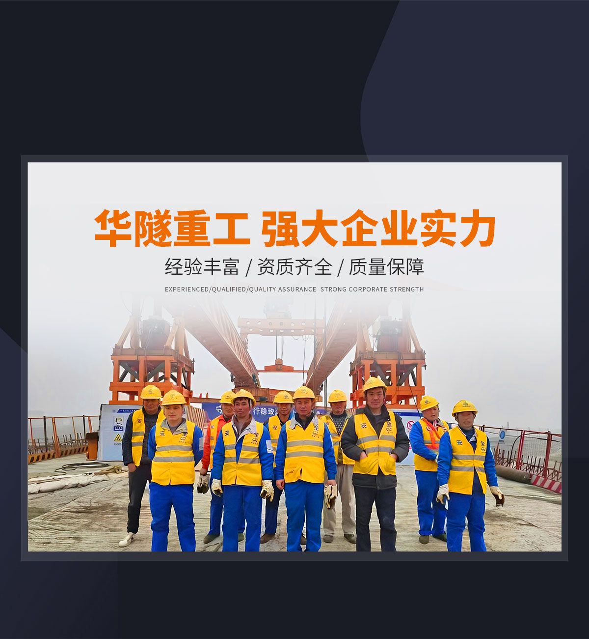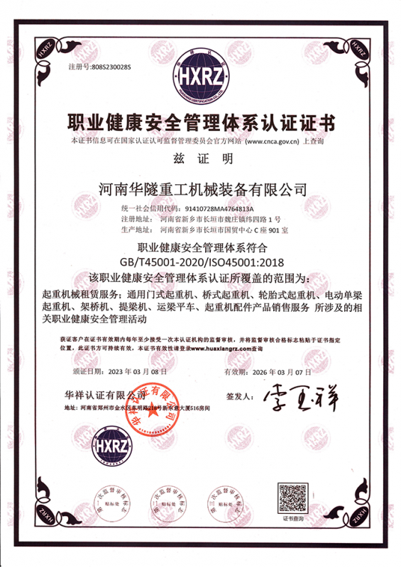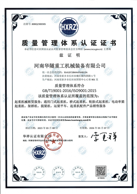 河南華隧重工機械裝備有限公司主要從事通用門式起重機、橋式起重機、電動單梁起重機,輪胎式起重機、架橋機、提梁機、遠梁平車、鋼絲繩電動萌蘆、卷揚機、起重配件制造、銷售:起重機械租賃、安裝和維修,起重設備園收,機械設備維修,鋼結構工程承包,橋梁工程及技術咨淘服務,銷售五金制品、機電設備:建設工程監理,建設工程設計,各類工程建設活動,建筑勞務分包,建筑物折除作業,施工作業,工程管理服務,土石方工程施工,裝如發運?! 」疽淹ㄟ^IS0國際質量、環境、健康與安全三合一標準認證,特種設備制造許可證和特種設備安裝改造維修許可證。擁有完熟的質量管理體系。嚴格的管理制度,強大的生產能力和先進的檢測手段,在保證產品質量的同時,也具備了極強的市場競爭力。  公司堅持科技創新為理念,產品質量為核心,注重信譽,建立了減信可靠、快捷、思速。便利周到的售后服務網絡?! ∥覀儞碛械募夹g專家和技術服務隊伍為客戶提供充善的售前技術支持和全天候的售后服務體系,讓您無后顧之憂,享受一站式的超值服務?!  叭A隧重工,伴您成功“是華隧重工永遠的宗指,真被的希望與各界朋友攜手并進。共創輝準!